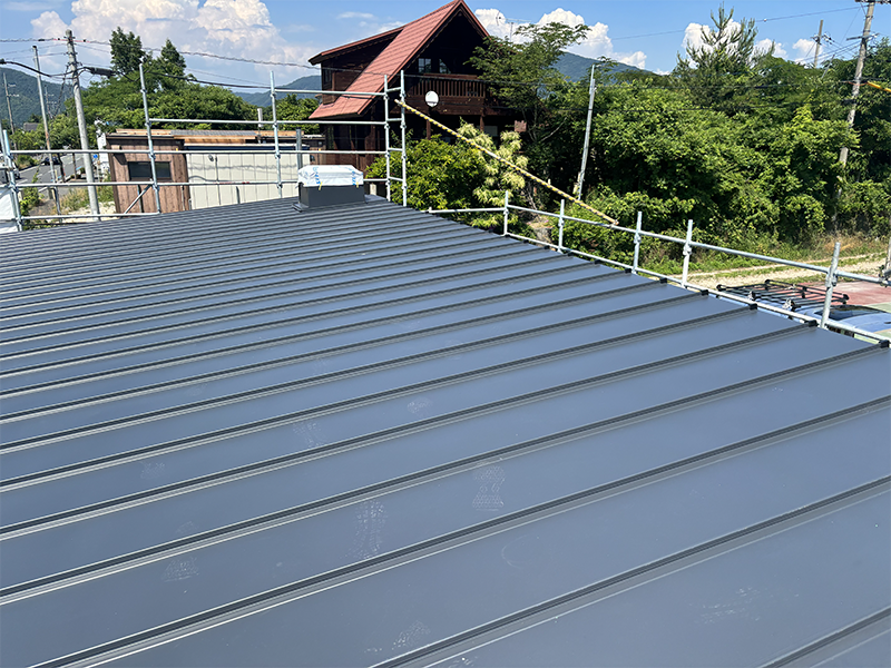 | 屋根ガルバリウム鋼板 | 外壁施工 | 内装板張り |