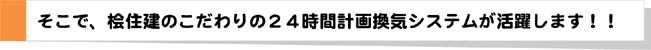 天井裏に取り付けた換気ユニットとダクトで家全体の換気を行うシステムを採用、換気ユニットが天井裏に 隠れること、外壁のフードが少ない事でインテリアやエクステリアがすっきりまとまります。 |