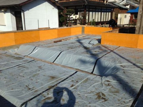 ![]() 湿気を防ぐ 防水シートを敷き詰めます |