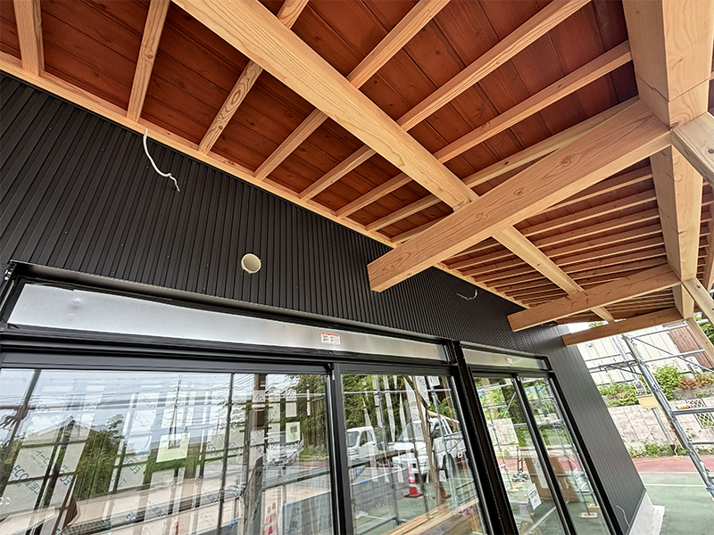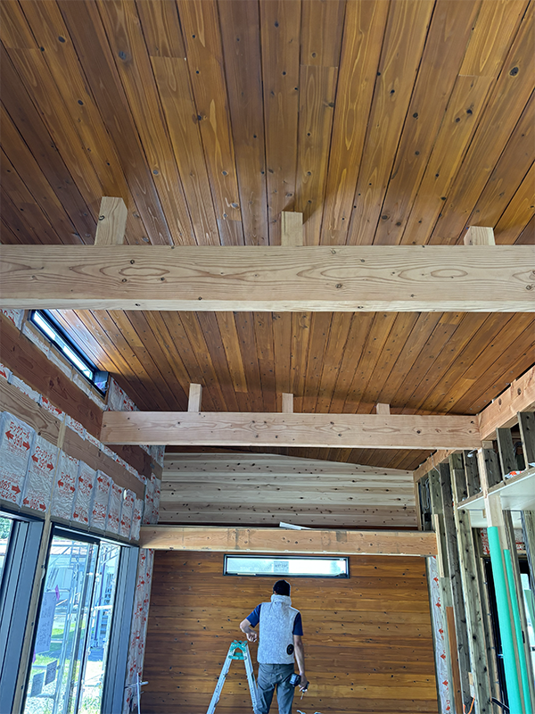 | 屋根ガルバリウム鋼板 | 外壁施工 | 内装板張り |